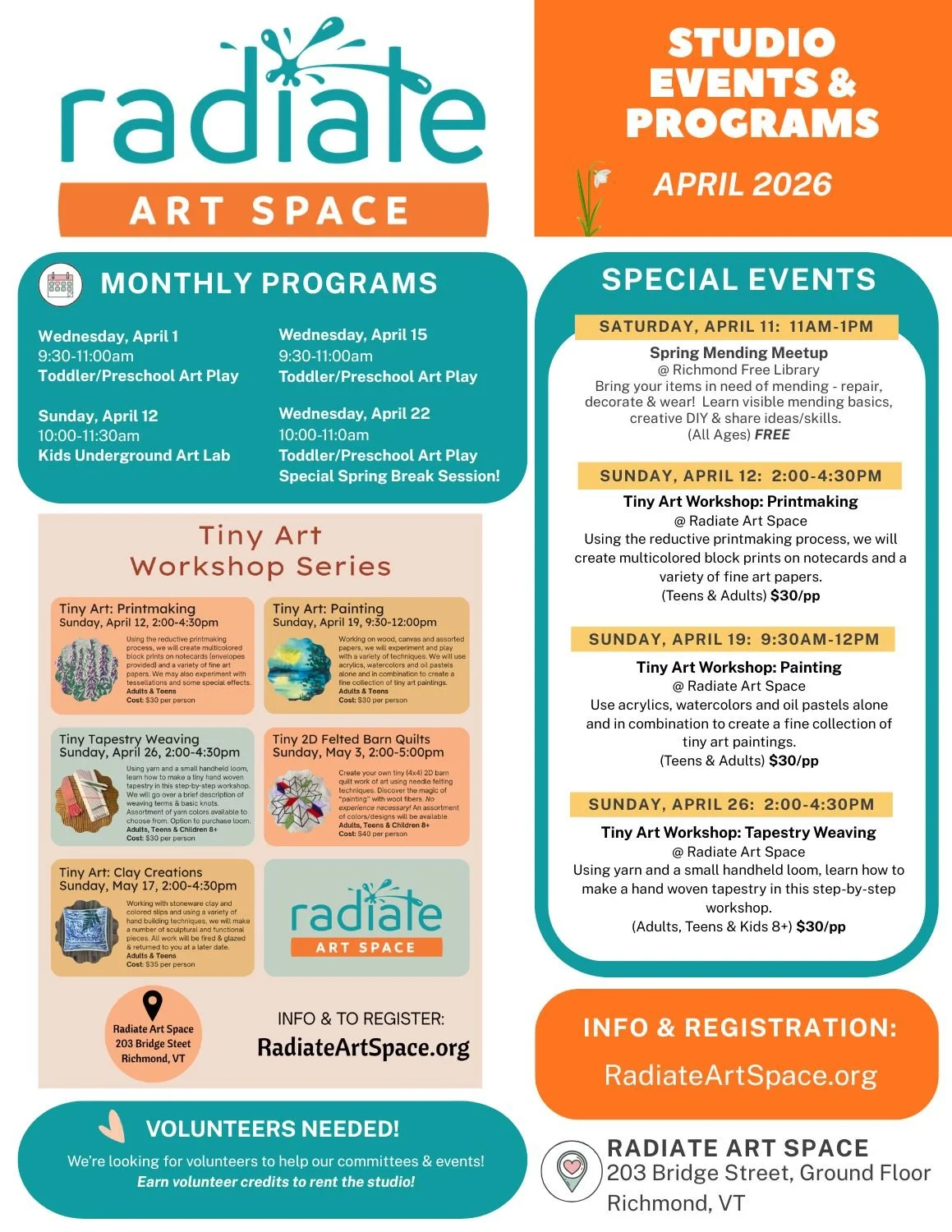 Upcoming Programs & Events at Radiate Art Space:
